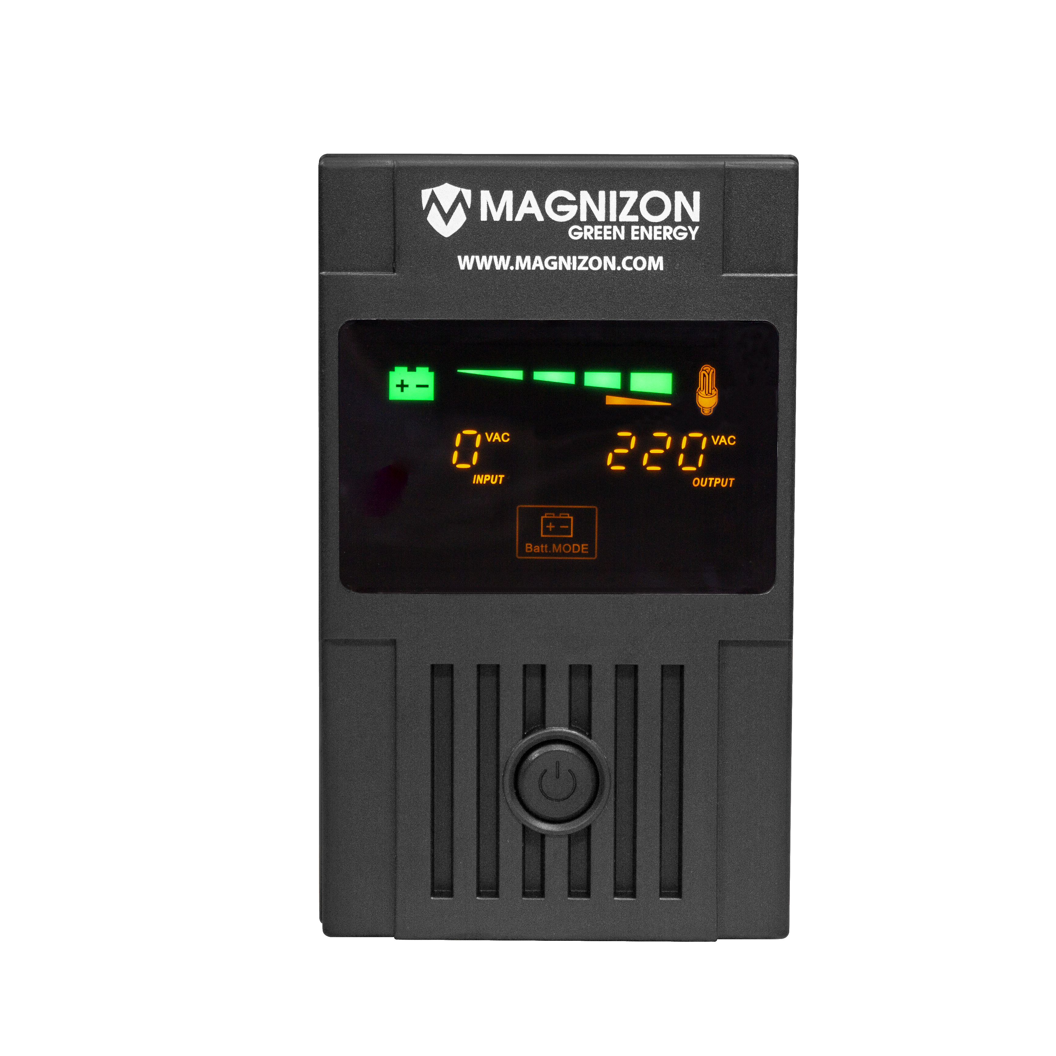 Magnizon Smart Line Interactive Uninterruptible Power Supply that uses Automatic Voltage Regulation (AVR) to stabilize power fluctuations without switching to battery, providing a reliable power source for all power related products, protection against surges and power sags, and featured a built-in battery for backup, and includes an LCD display for status information